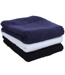 100% cotton. Luxurious thick pile terry towelling.Flat weave border (11cm).Excellent absorbency qualities.Hanging loop.