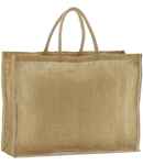 Unlaminated starched jute. Cotton carry handles (47.5cm long).Cut out label.Capacity 46 litres.